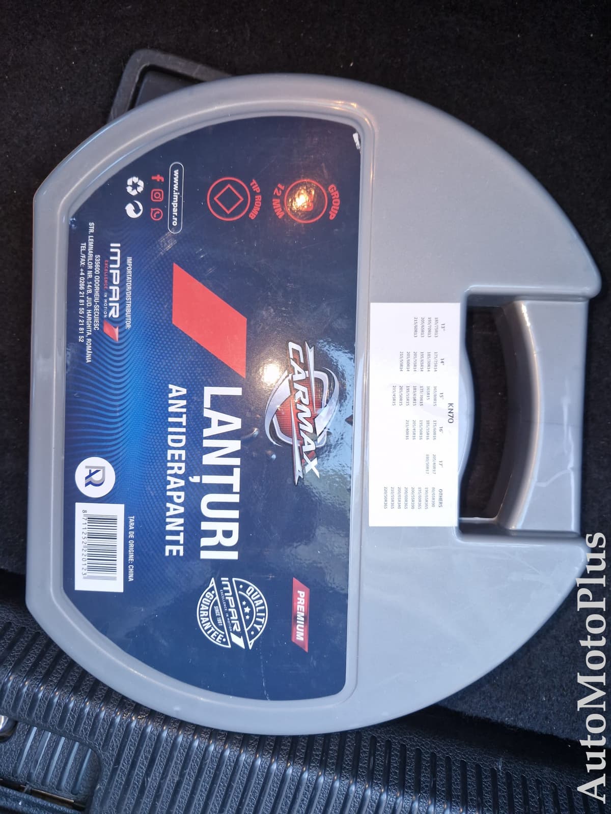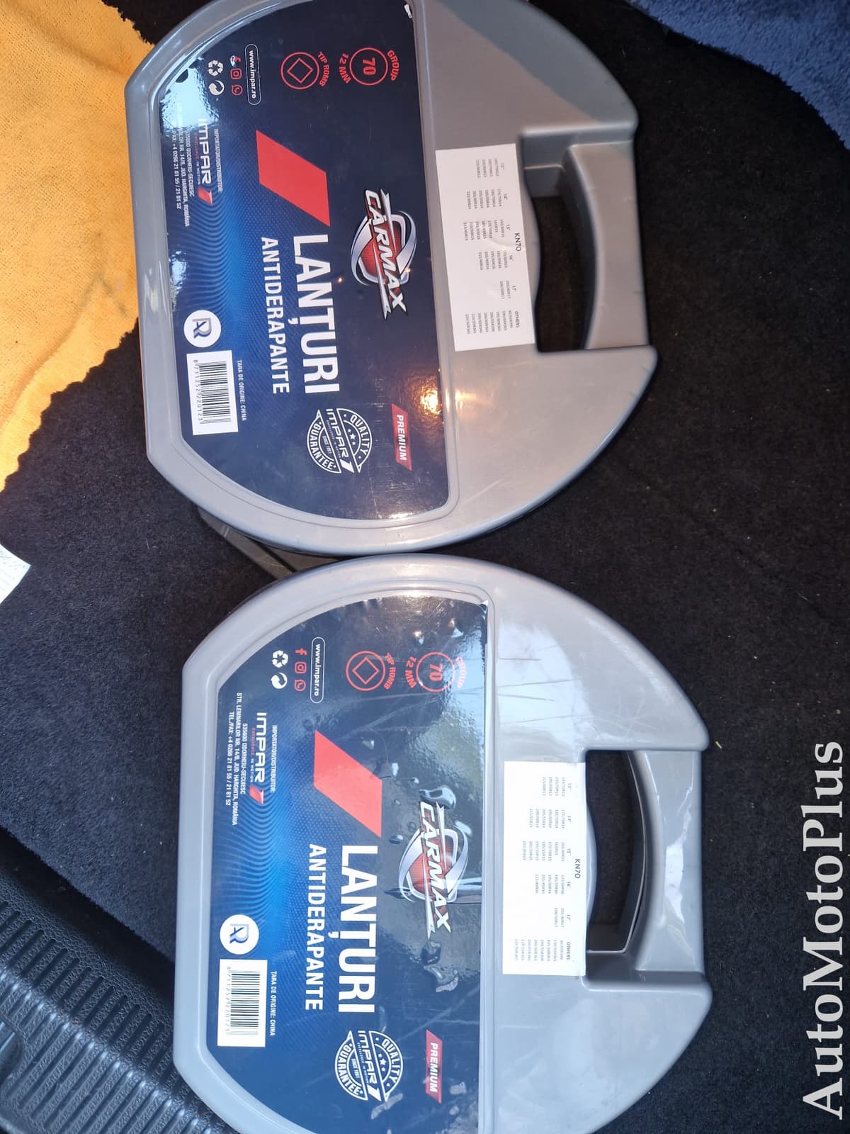 Vand lanturi pentru roti auto ,potrivite pentru majoritatea masinilor . Marca Carmax, compatibile cu mai multe tipuri de roti. Am 2 setrui de lanturi , 100 de lei un set iar cine le vrea pe ambele 160 de lei . Dimensiunile rotilor in poza 4